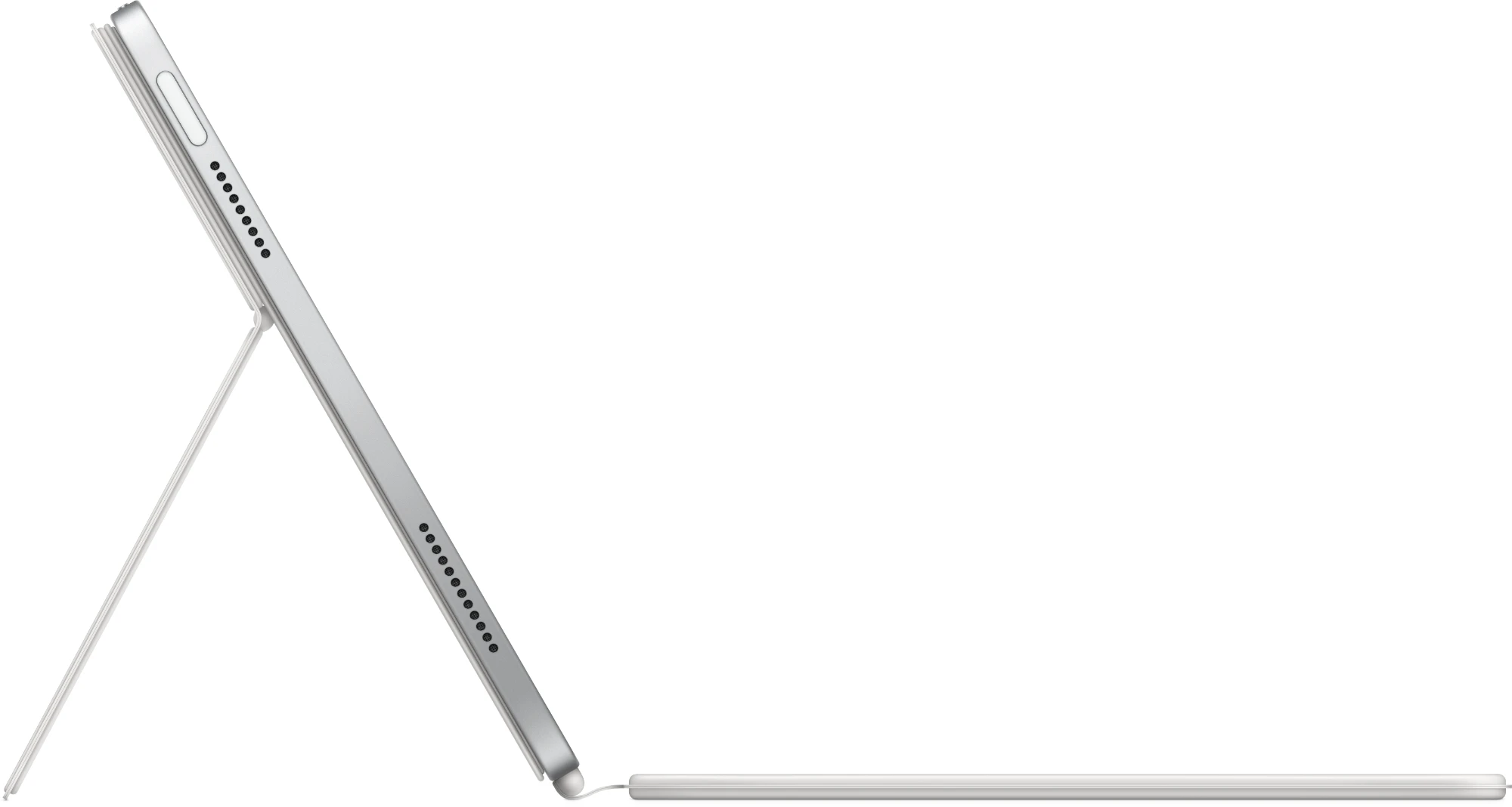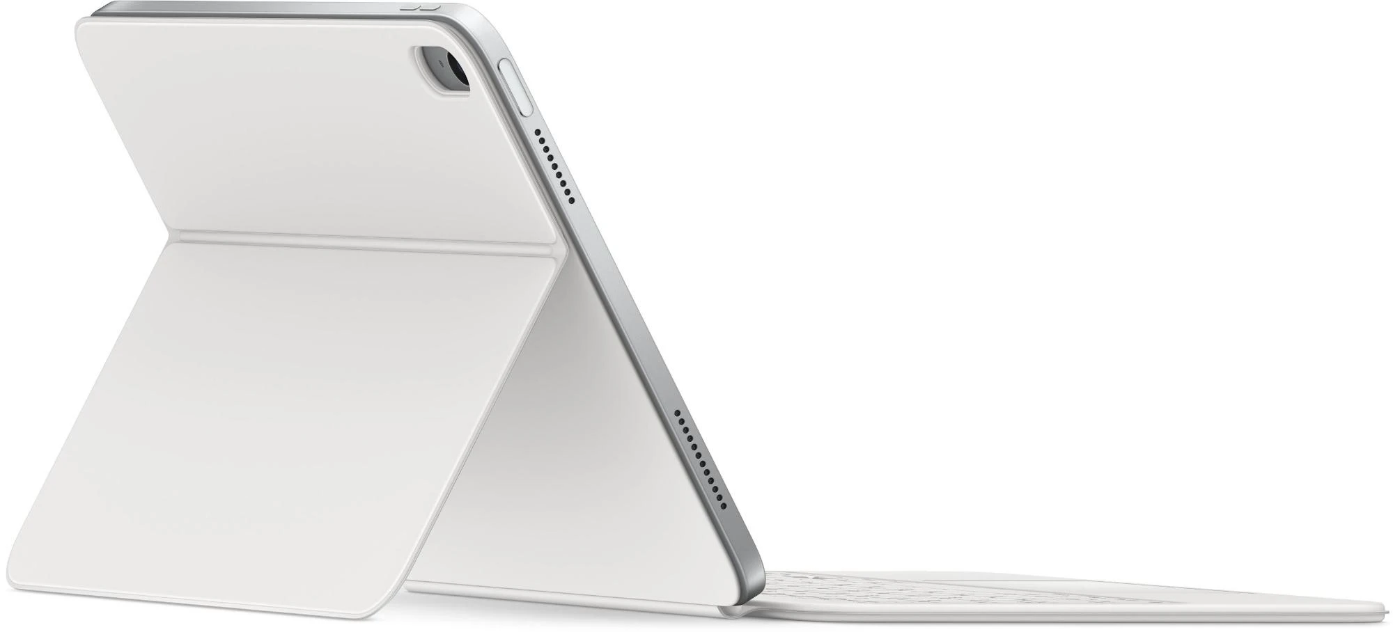 Mit dem MagicKeyboardFolio kannst du angenehm tippen und mit einem großen Trackpad arbeiten. Pass schnell die Lautstärke an oder such eine Datei über die Reihe mit Funktionstasten. Das flexible zweiteilige Design kommt mit einer abnehmbaren Tastatur. Die schützende Rückseite hat eine verstellbare Stütze für verschiedene Betrachtungswinkel